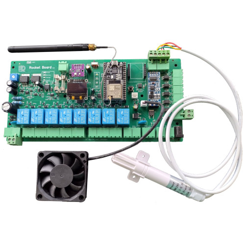 A RocketBoard busca cada programação na plataforma WEB da nuvem e atua com base na programação definida, ao mesmo tempo que atua sobre os acionamentos, realiza as medições e envia para a plataforma WEB na núvem.